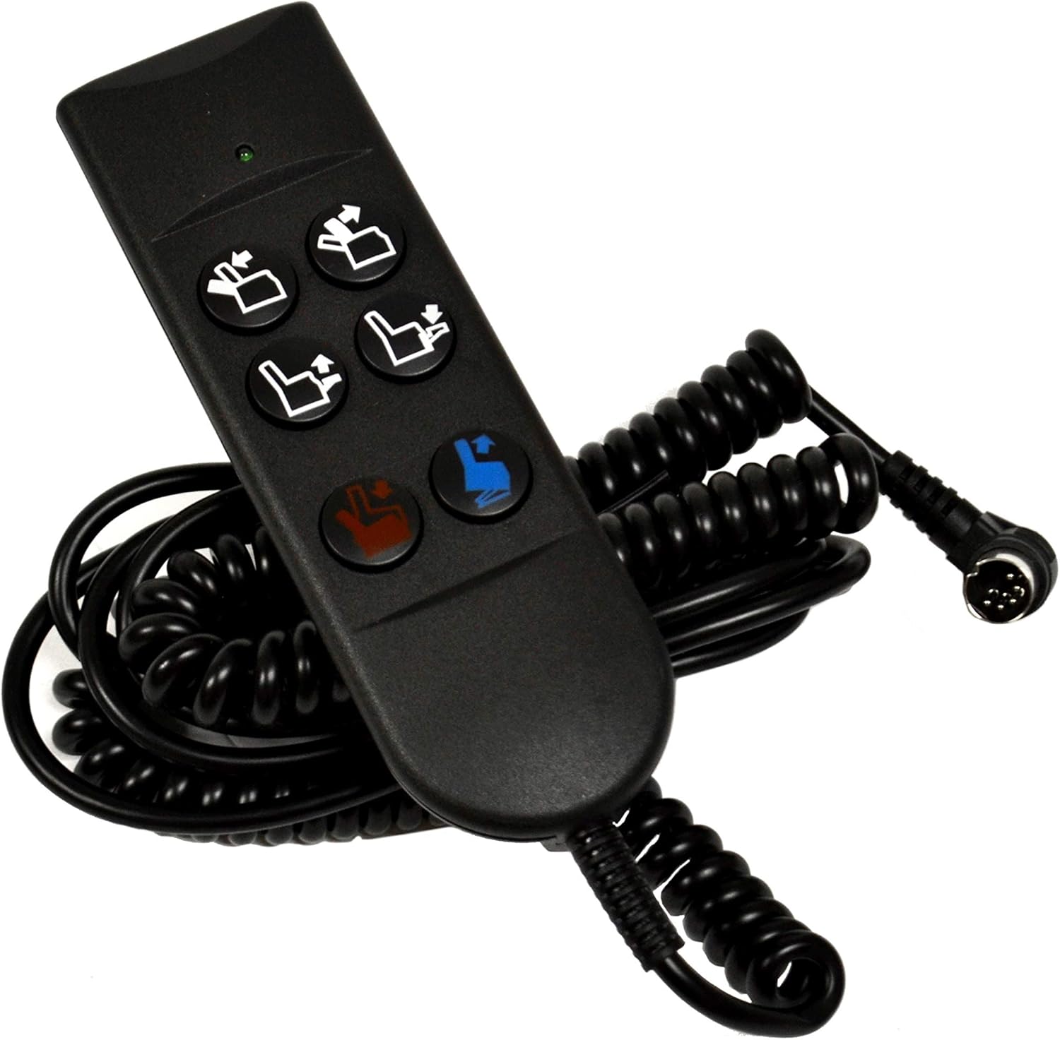 Fruhdi 2 Button 5 Pin Prong Remote Handset Controller Hand Control with USB and Backlight for Lift Chairs Power Recliners Brand. Dewert Pride Hand Control 5 pin. This hand control has a long black housing with 6 buttons.