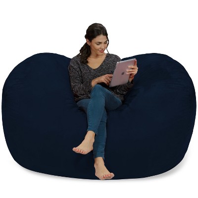 Round microfiber bean bag chair with super soft cover.